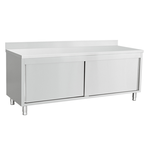 Table de travail de cuisine armoire avec crédence table de travail table de travail en acier inoxydable banc avec porte coulissante